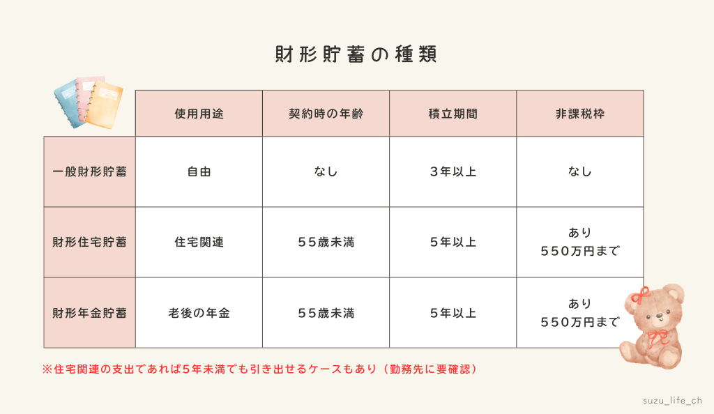 財形貯蓄は主に次の3種類!