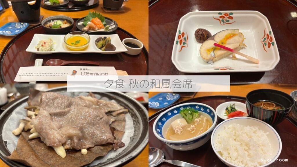 私が選んだのは、飛騨高山の旬の食材を使った会席料理(夕食)と朝食バイキングが楽しめるプラン。