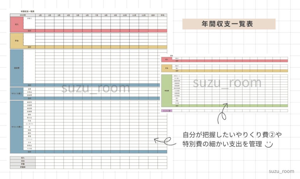 • 年間収支一覧表:お金の使い方を見直すツール=見直しやすさ重視