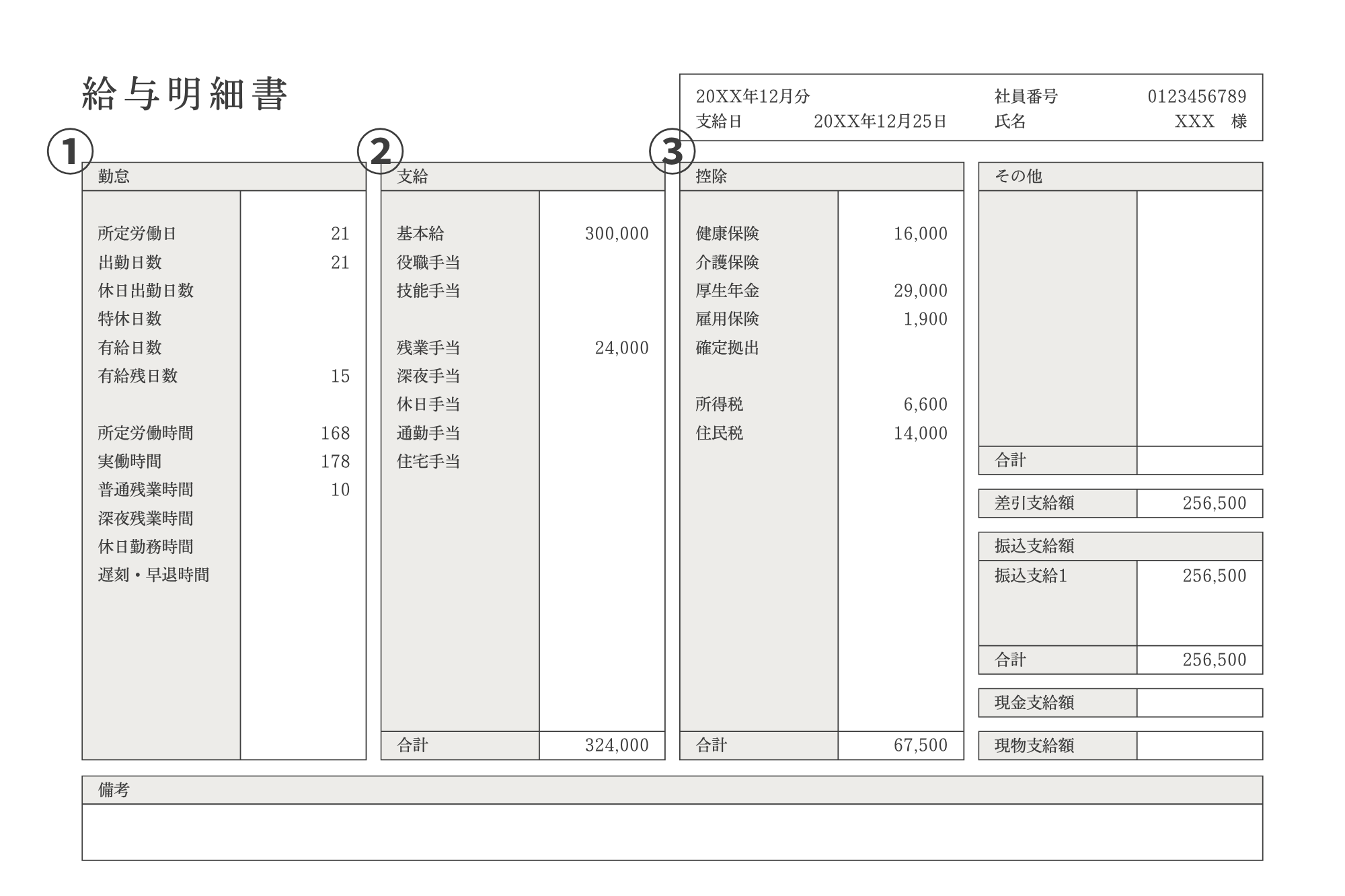 例えば「有休で休んだのに欠勤扱いになっていないか?」「申告した残業時間が反映されているか?」など、給与精算で意外とミスが出やすい部分なのでチェックしてみてください。