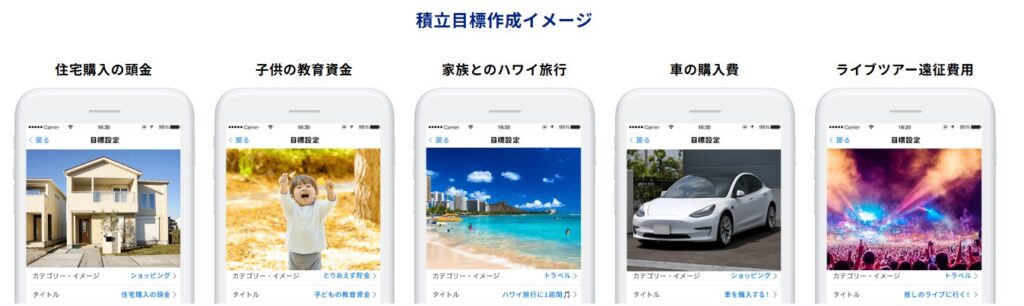 - 住宅購入頭金、教育資金、車購入資金など分けて管理できる