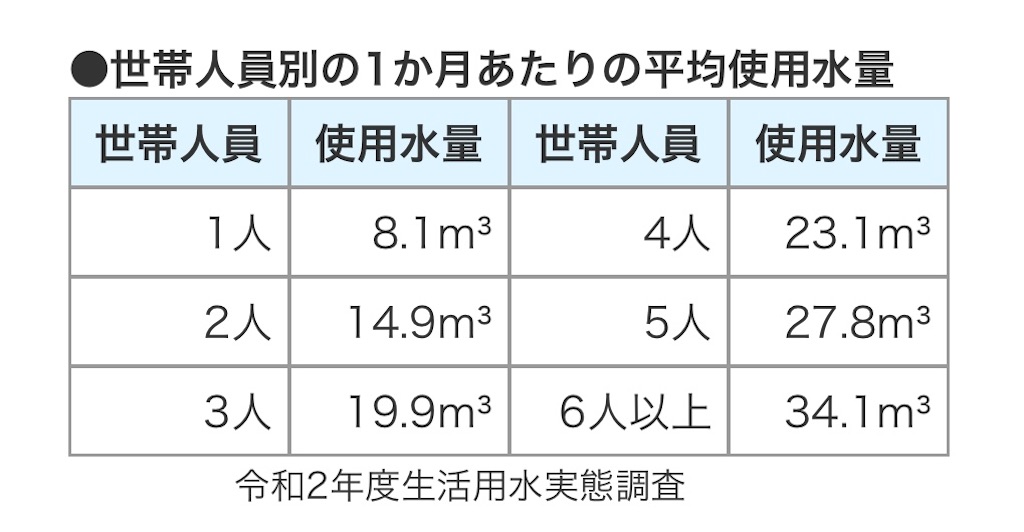 「自分の家庭は水を多く使いすぎているのか?」の参考に、一般的な水道使用量の平均を紹介します👇🏻